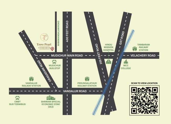 The Trove Pearl is a premium Apartments project by The Trove Foundation at Tambaram, Chennai. Located strategically on the Mudichur Main Road close to the prime landmarks, this value appreciating property is a perfect home with well-developed infrastructure facilities
